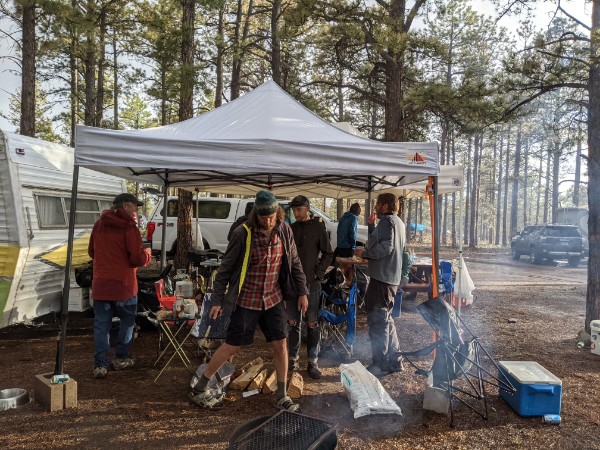 No trail work and riding is complete without some après time. A barbecue burned defiantly in the face of intermittent rain and hail. Tales of trails carried the night between bursts of frequent thunderstorms, as we stayed dry under popup tents.