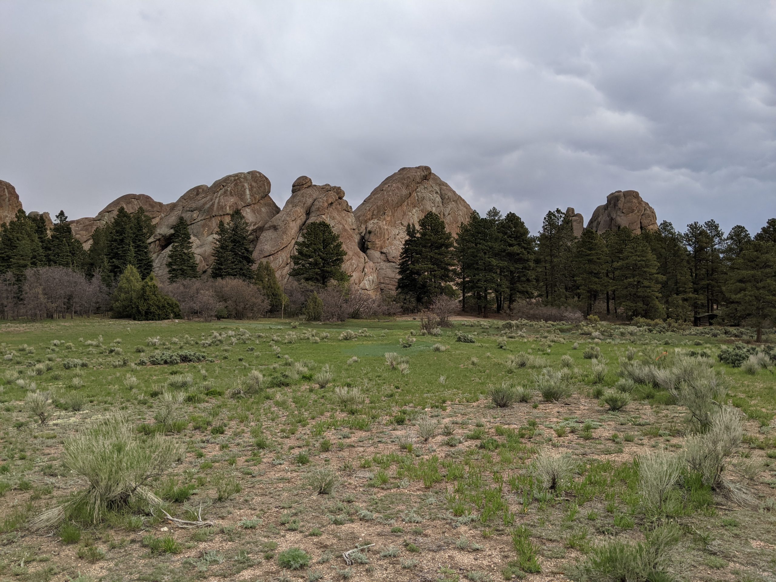 Taos area mountain bikers and their families descended on the boulders of Tres Piedras for two days last weekend. In conjunction with the Carson National Forest Tres Piedras Ranger District, the TMBA group established and cleared ~ 2 miles of new trail mileage in a recently fire-treated stand of ponderosa pines. A year of recovery yielded new growth of grasses popping out of the granite-flecked soil.